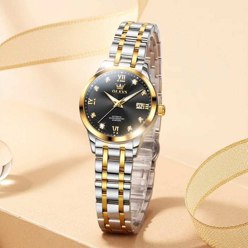 Women Luxury Automatic Watch Stainless Steel 26mm Sapphire Crystal Calendar Water Resistance
