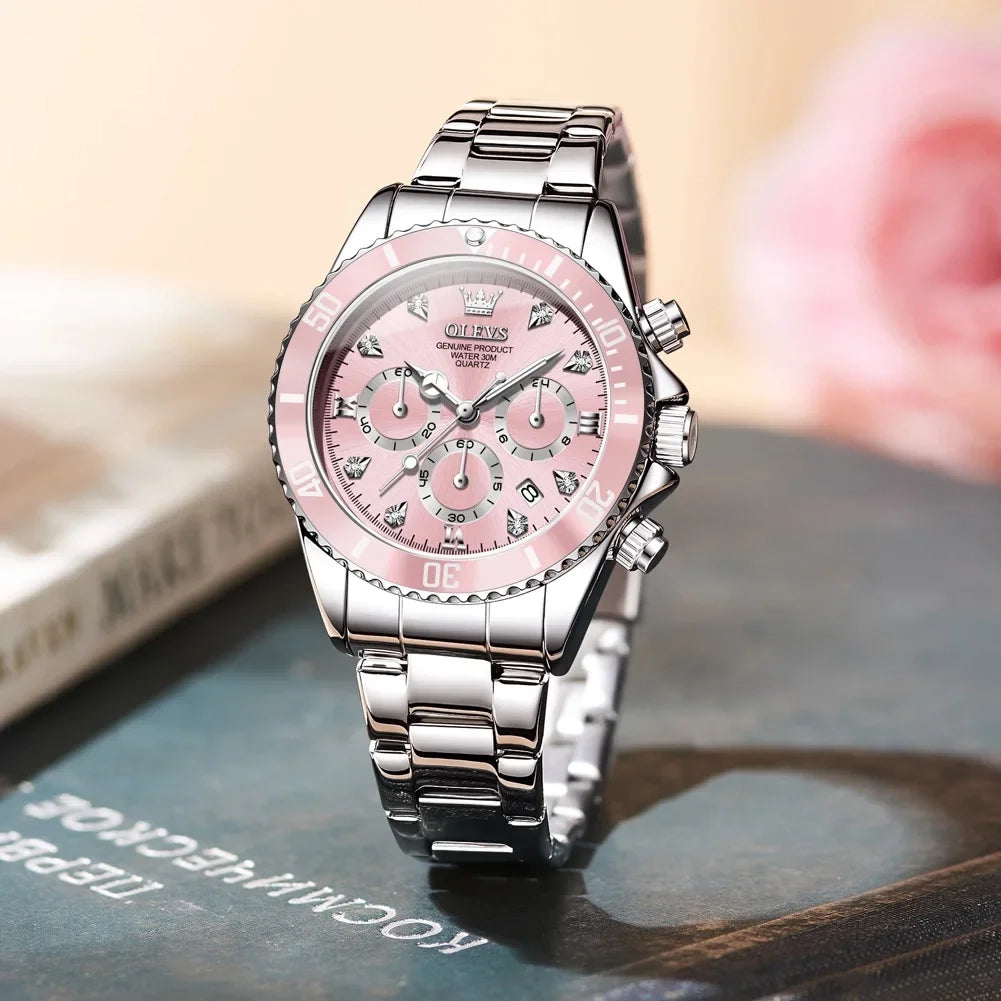 Women’s Quartz Watch Luminous Calendar Stainless Steel Shock and Water Resistant