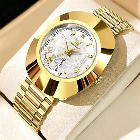 Golden Women’s Quartz Watch Luminous Date Dial Leather Strap Shock & Water Resistant