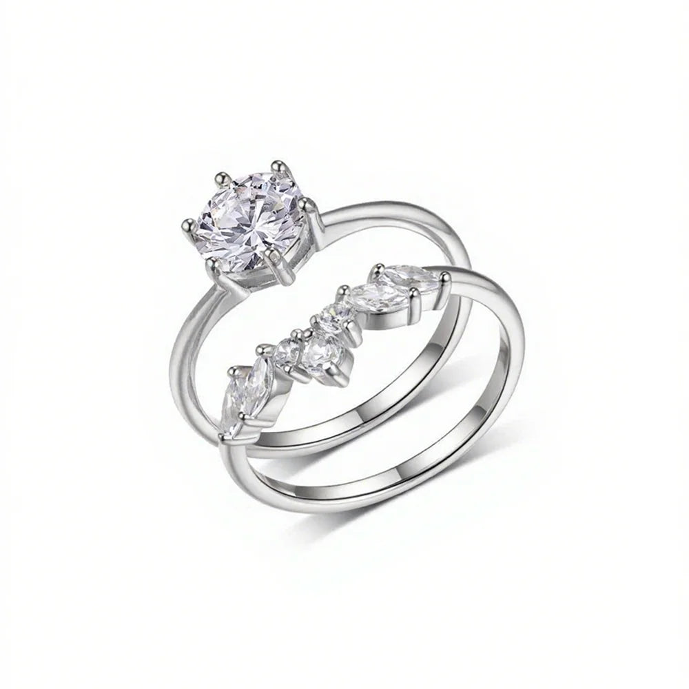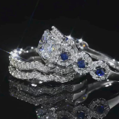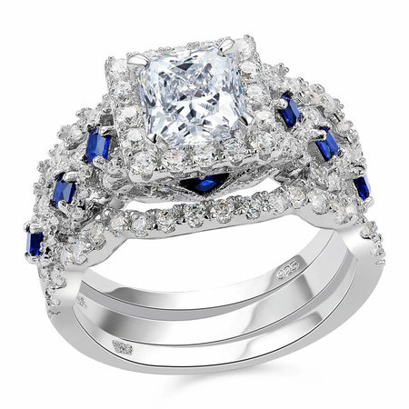 Women’s 3-Piece Princess Cut Cubic Zircon Bridal Ring Set Sterling Silver Jewelry