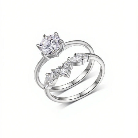 Women’s Moissanite Diamond Sterling Silver 3-Ring Connect Design Engagement Jewelry
