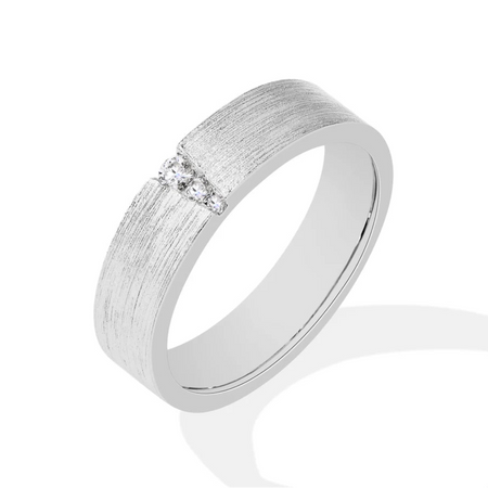 Women and Men Moissanite Couple Rings Brushed Design Sterling Silver Wedding Bands