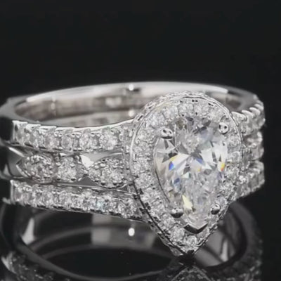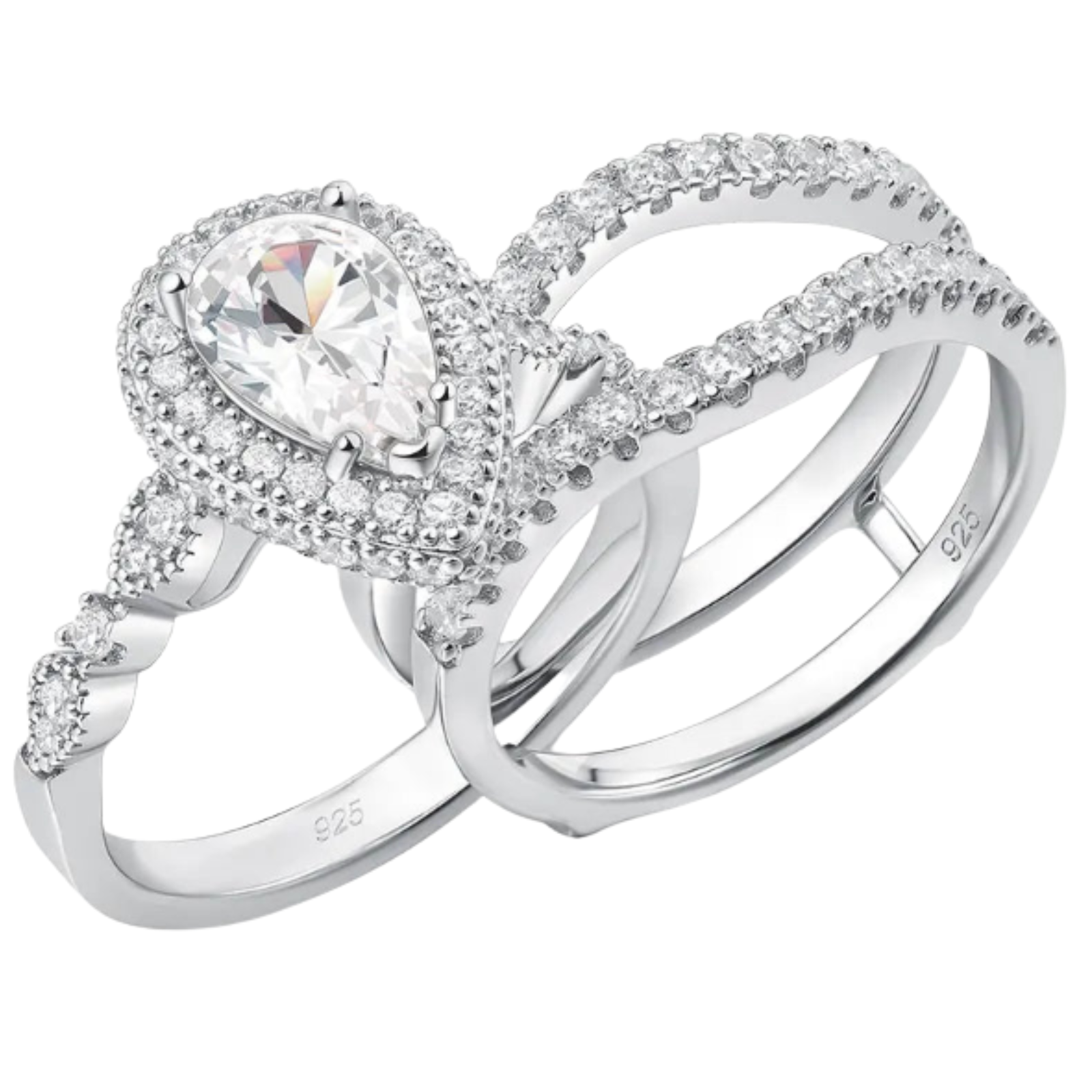 Women’s Pear Cut Zircon Engagement Ring Set 925 Sterling Silver Enhancer Wedding Band