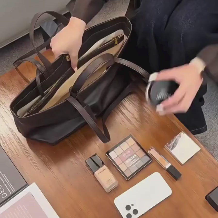 • Leather Women’s Bucket Shoulder Bag with Zipper and Slit Pocket