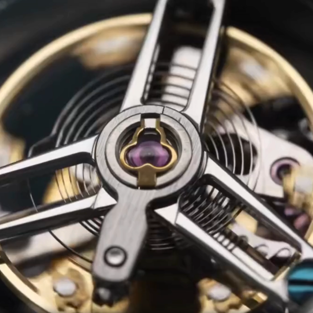 - Movimiento: Tourbillon mecánico coaxial — cuerda manual, sin tornillo de aire