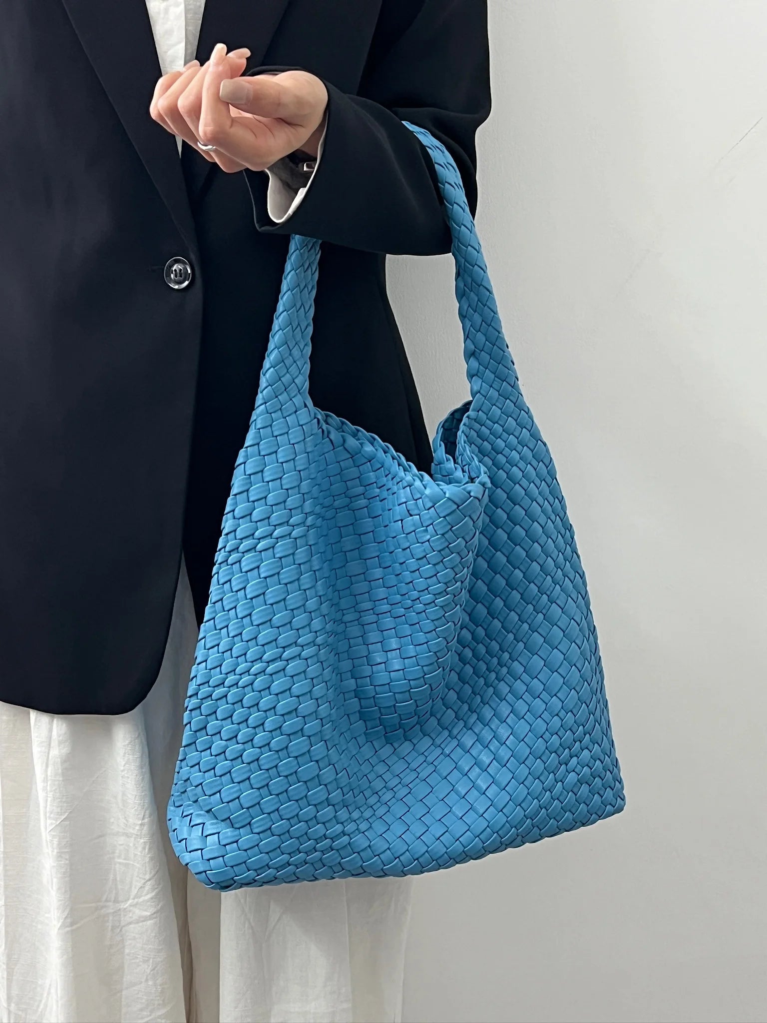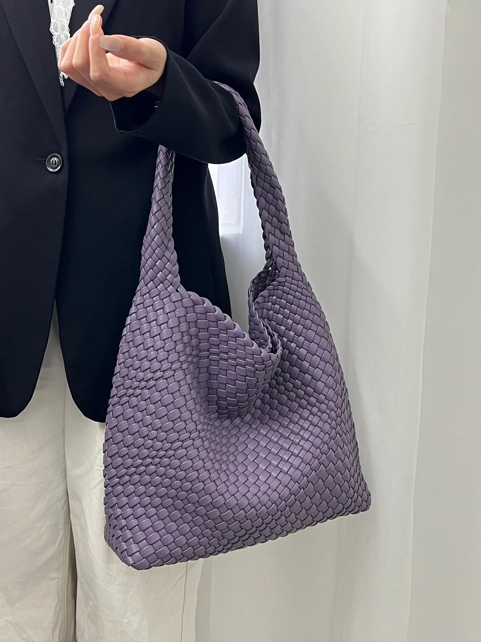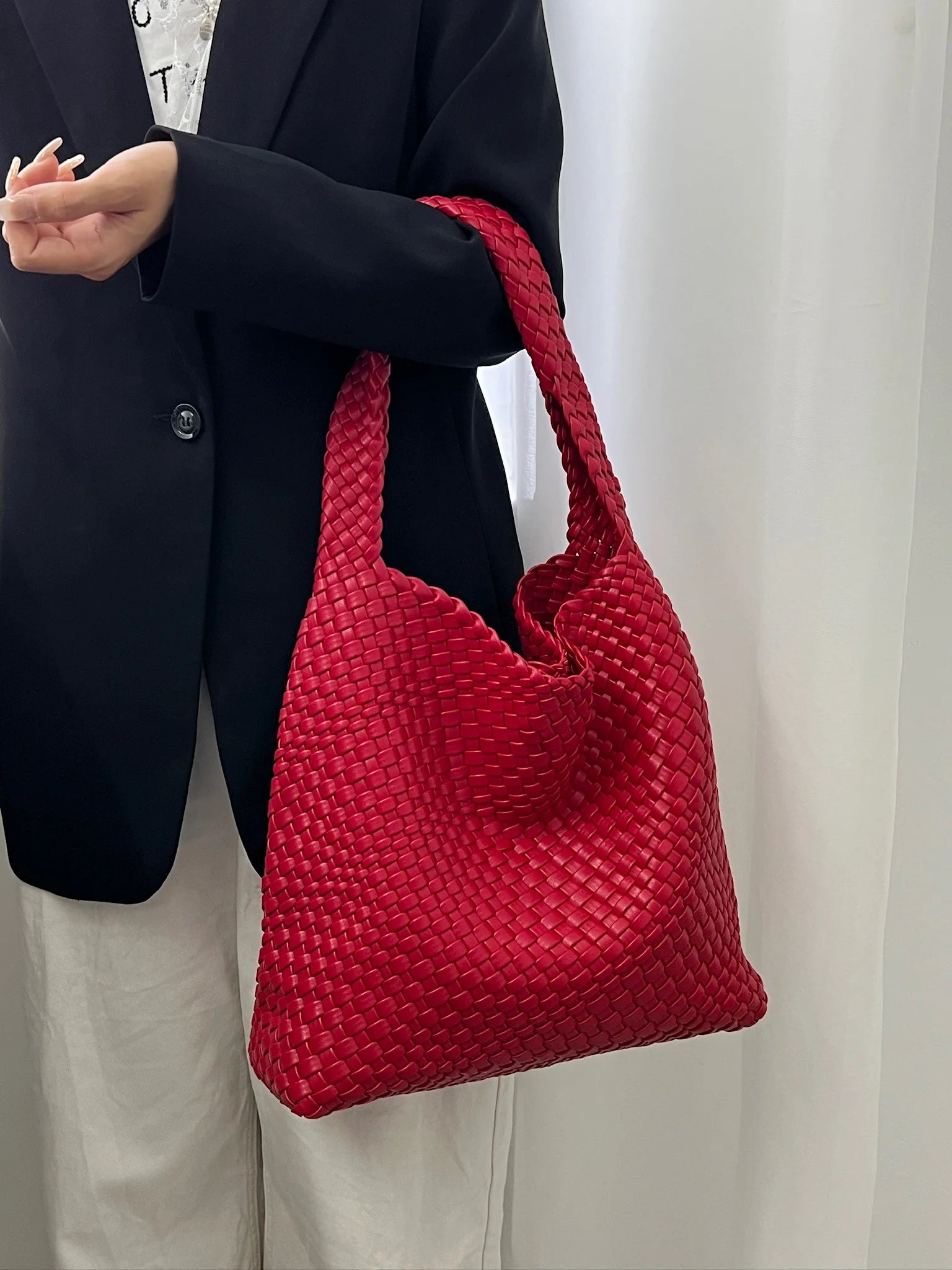 Woven PU Women’s Shoulder Bucket Bag High Capacity Handbag