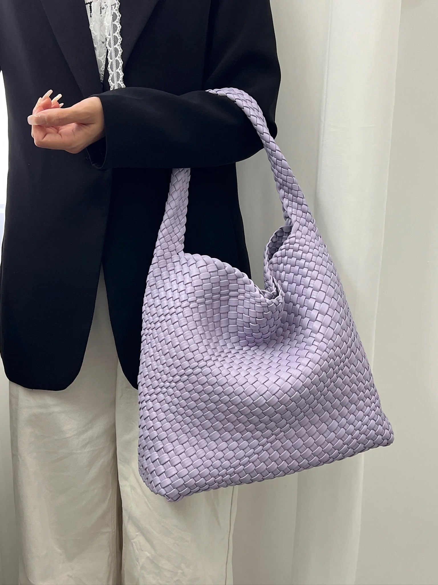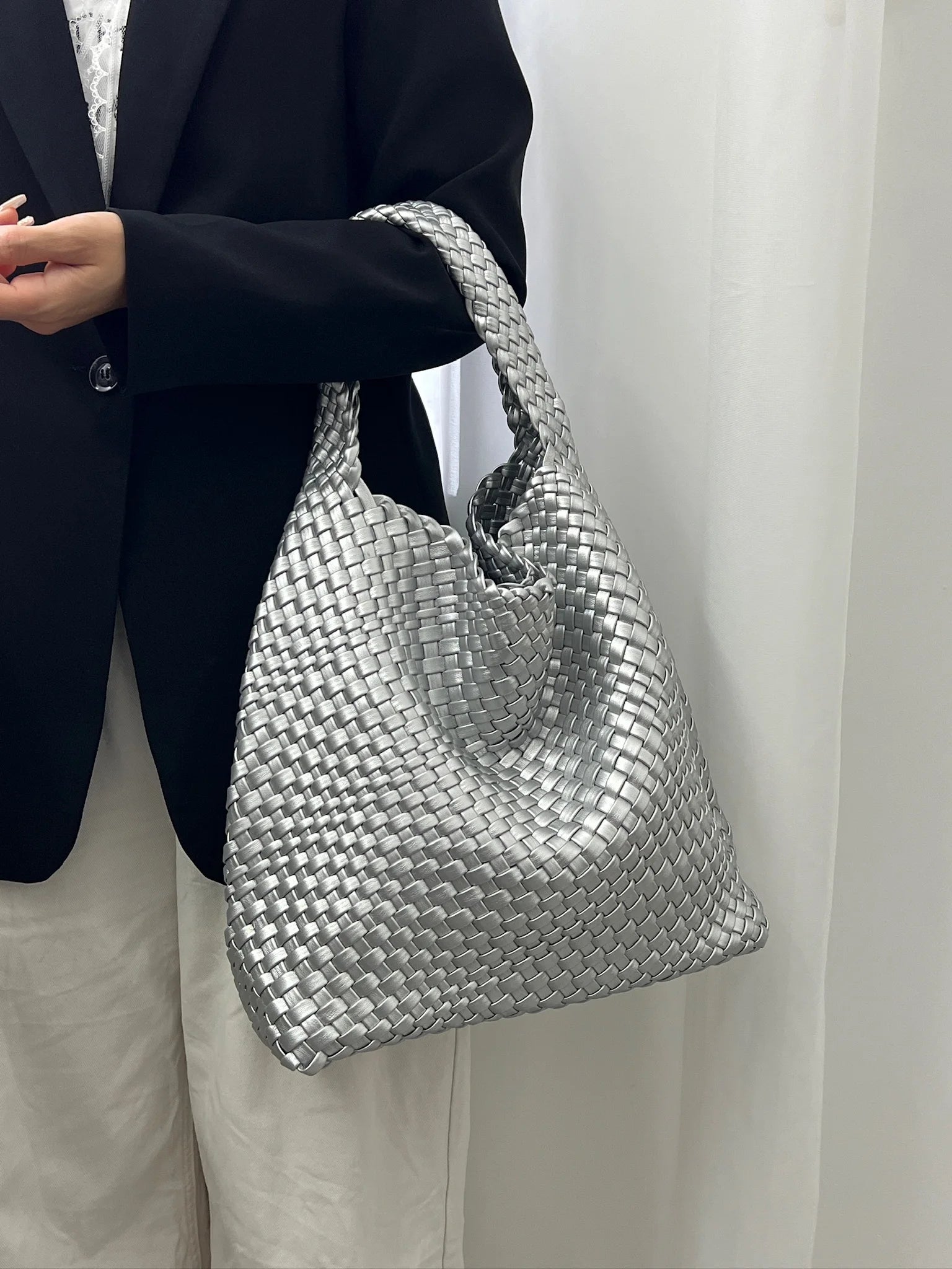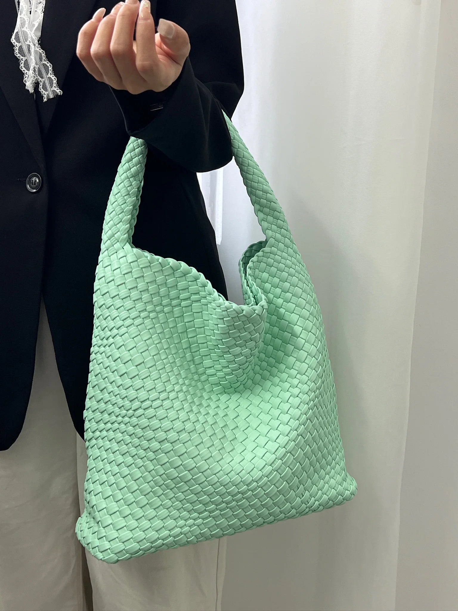 Woven PU Women’s Shoulder Bucket Bag High Capacity Handbag