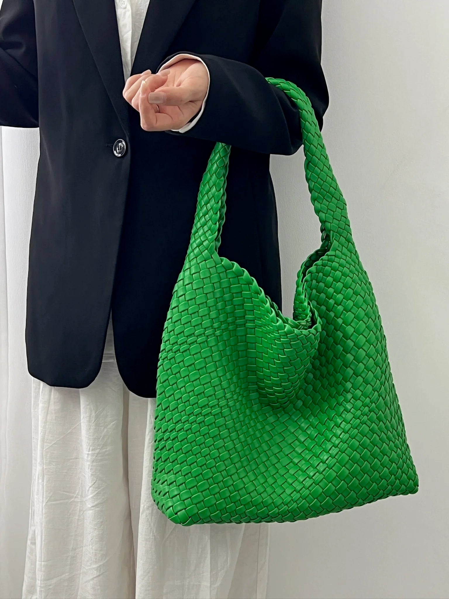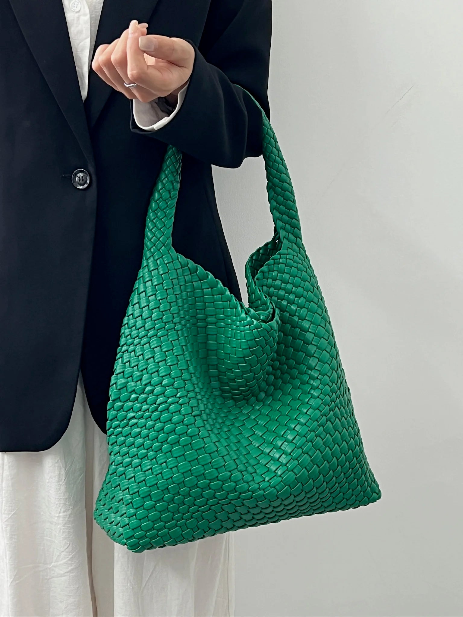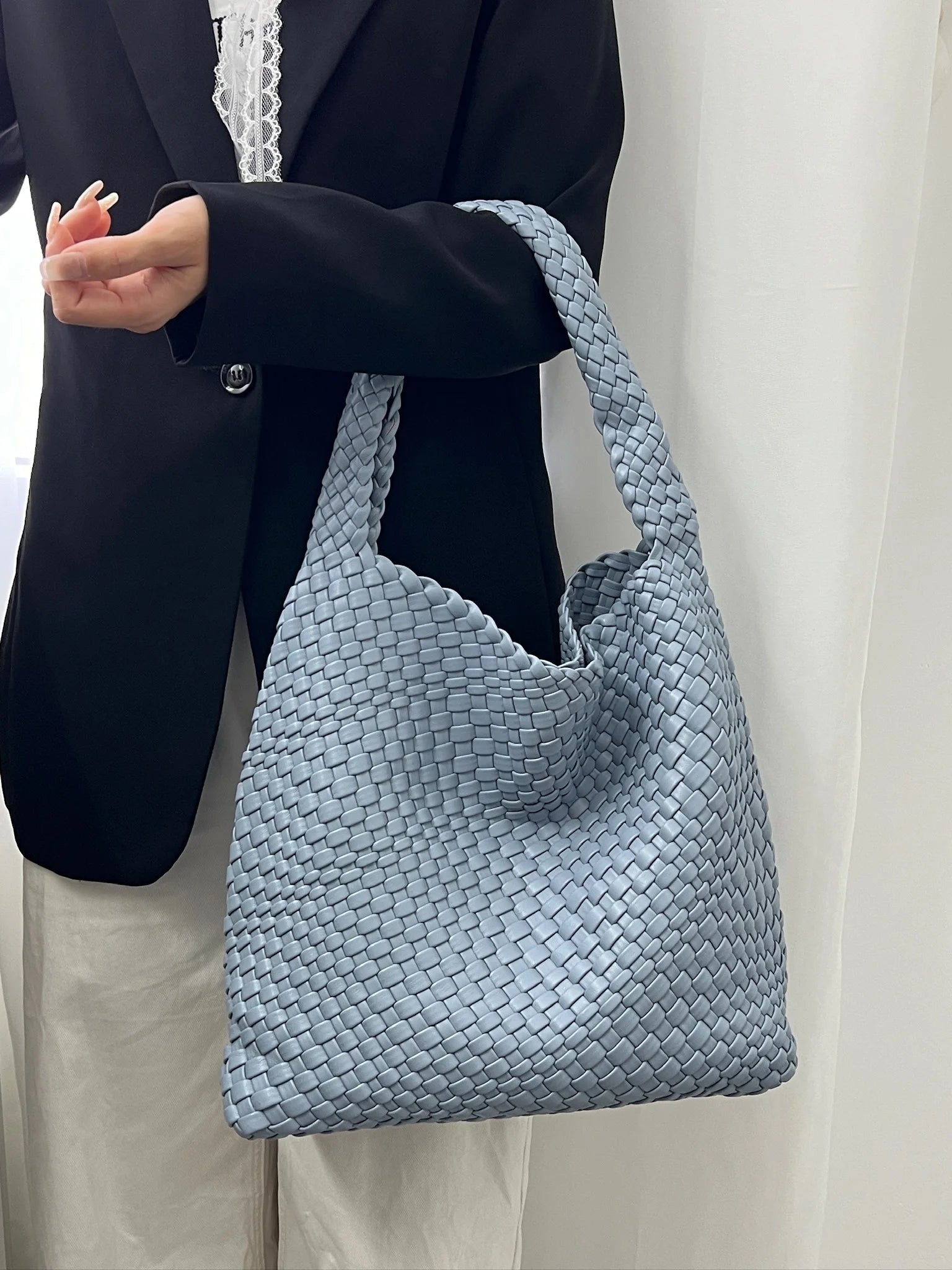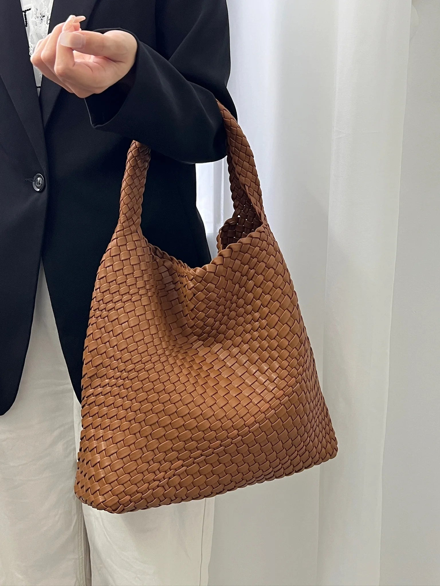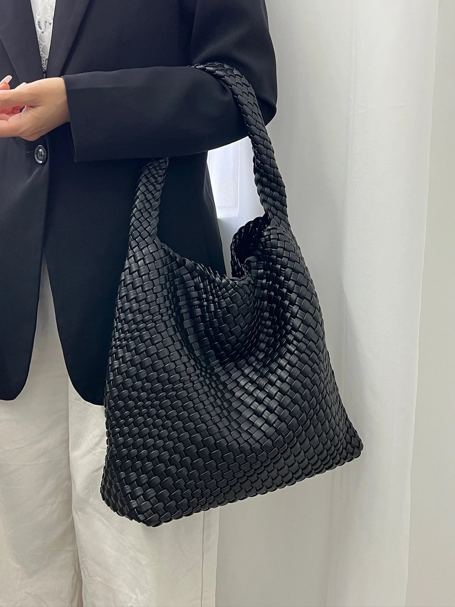 Defined by its handwoven texture and soft PU leather construction, this women’s shoulder bucket bag combines functionality with refined design. Its structured yet relaxed silhouette offers a polished presence, while the high-capacity interior and open pocket exterior ensure effortless organization. Perfect for versatile daily wear, casual outings, or elevated everyday styling.