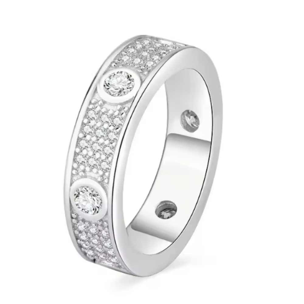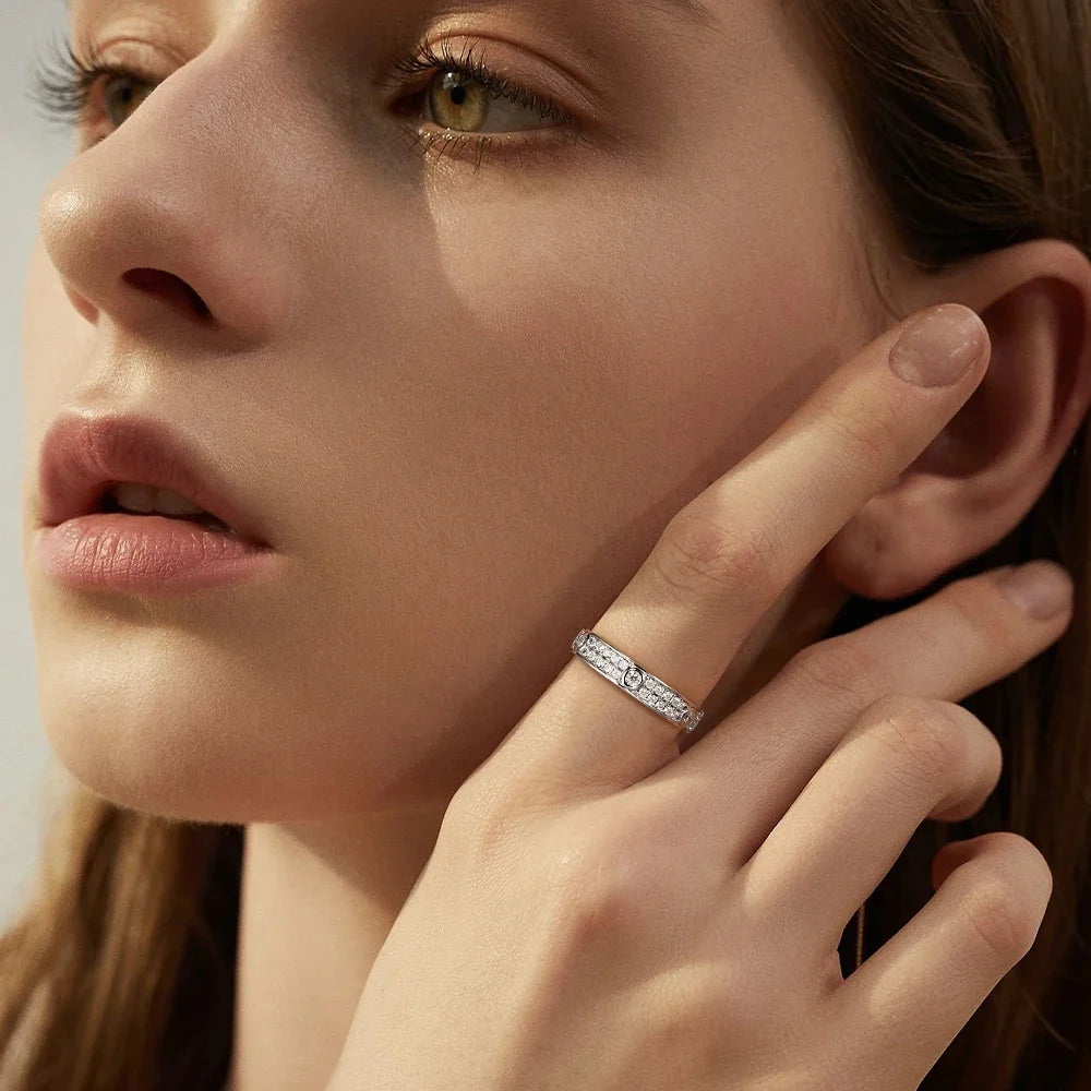 A timeless piece designed for everlasting elegance — this Eternity Moissanite Wedding Band features round-cut D-color moissanite stones set in solid 925 sterling silver with a white gold plated finish. At just 2mm wide, it offers a delicate yet radiant sparkle, perfect for weddings, engagements, or stacking with other rings. Hypoallergenic, nickel-free, and crafted with durability in mind, this band shines brighter than diamonds while being more affordable. Comes in a luxury gift box, making it an ideal present for anniversaries, birthdays, or special celebrations.