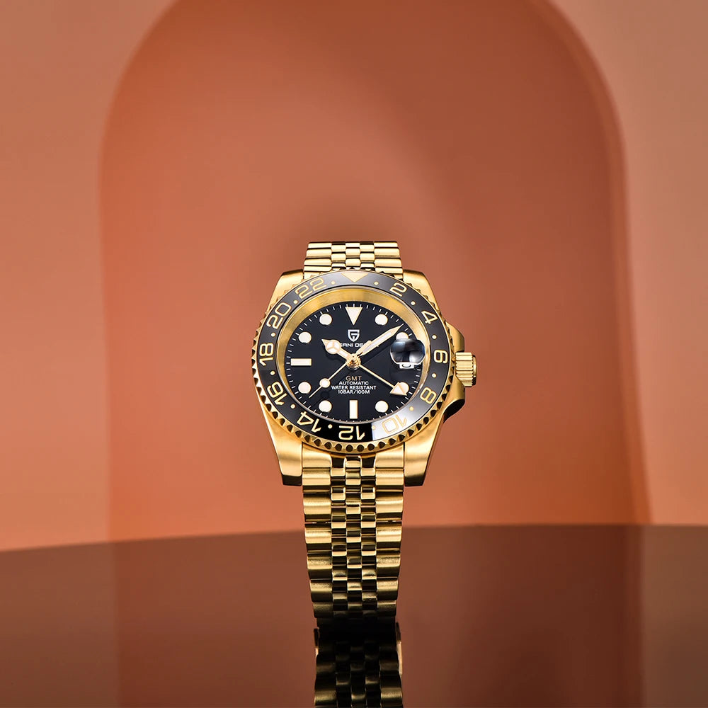 Engineered for the modern explorer, this GMT Automatic Watch combines mechanical precision with rugged aesthetics. It features a self-winding movement, scratch-resistant sapphire crystal, and a robust stainless steel case built for long-term wear.