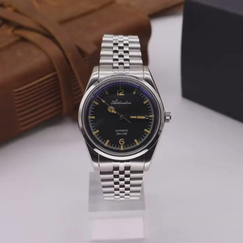 Men’s Automatic Business Watch NH35 Silver Stainless Steel 10ATM Luminous Dial