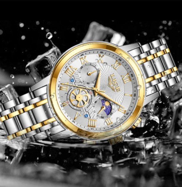Aurum Elegance Quartz Watch for Women Gold Silver Roman Numerals Water Resistant