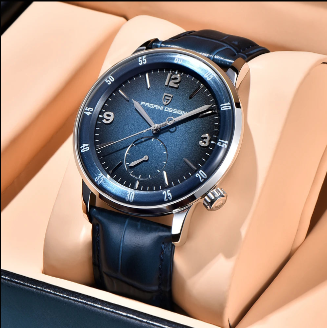 Men’s Automatic Mechanical Business Watch Dual Time Zones Leather Water Resistant 10ATM
