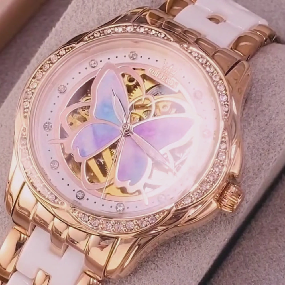 Women's Ceramic Bezel Automatic Watch 35mm Water Resistant Stainless Steel Luminous Hands