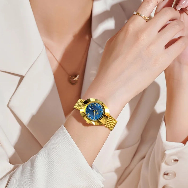 Women’s 44MM Luxury Quartz Watch Roman Numeral Dial Auto Date Push Clasp Water Resistant