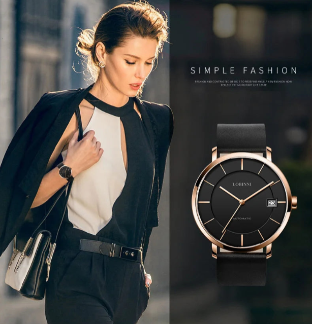 Women’s Luxury Automatic Watch 34mm Sapphire Crystal Leather Strap 5ATM Water Resistant