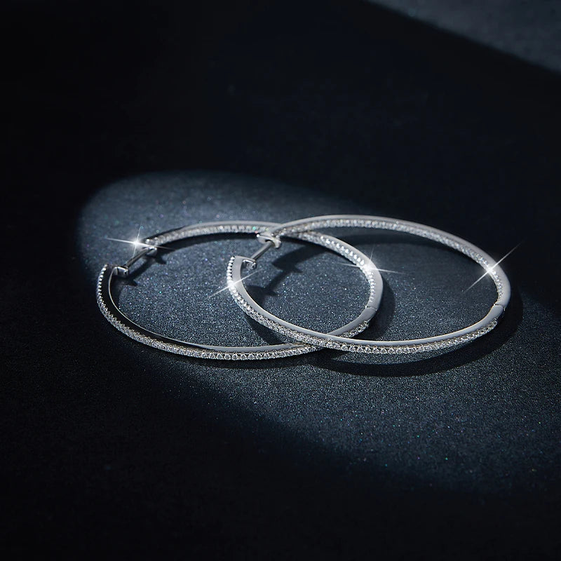 Women’s Moissanite Hoop Earrings 50mm Sterling Silver Full Eternity D Color Sparkling Design