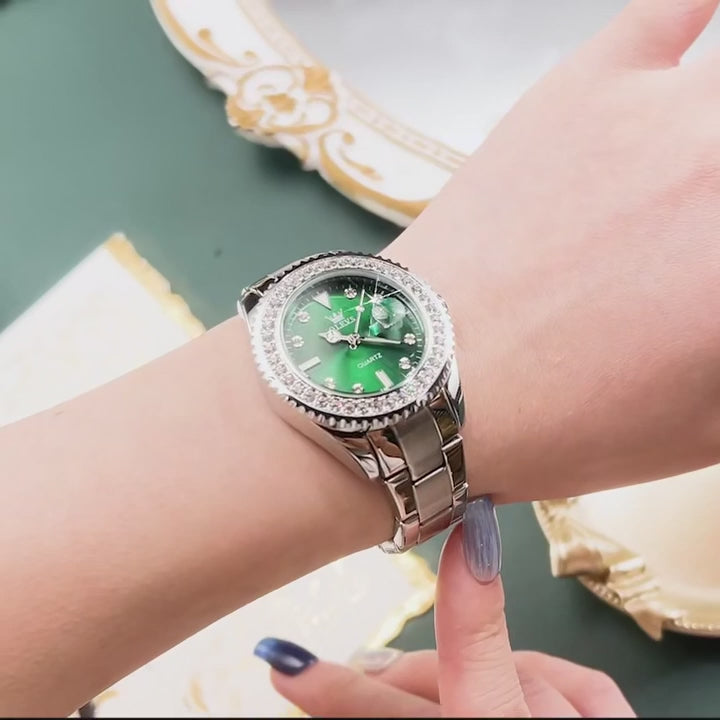 Women’s Quartz Watch Diamond Dial Luminous Hands Complete Calendar Stainless Steel