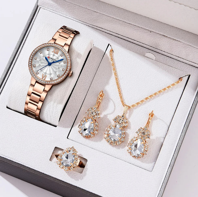 Special Features: Complete 5-piece gift set (watch, necklace, ring, earrings), Lightweight 65g design, Ideal for daily wear and special occasions